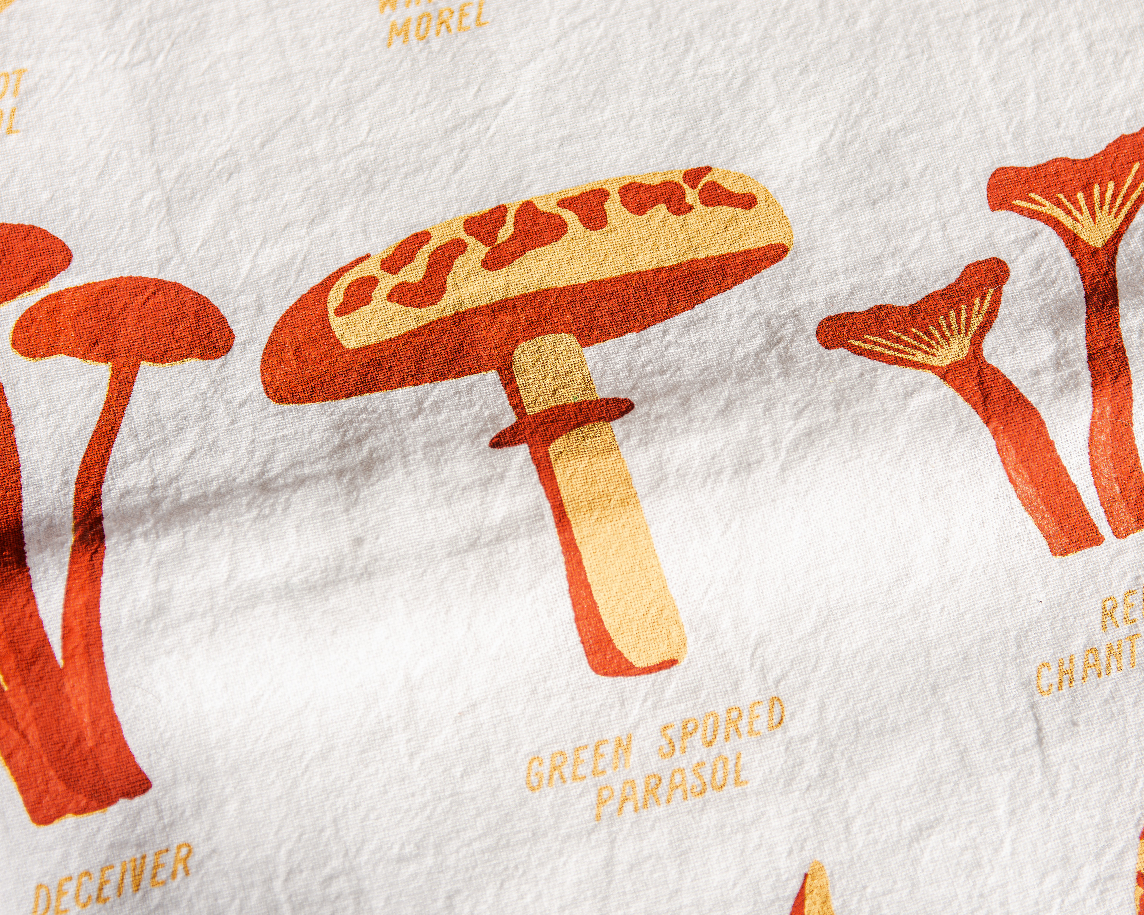I choose the weirdest and most interesting looking mushrooms found in Oklahoma for this illustration. The Devil's Dipstick, right? Designed for the in-house Shop Good brand, we've printed this artwork on tees, posters, tote bags and most recently these tea towels.